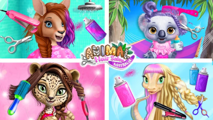 Započnite svoju avanturu sa Amy, najmodernijom mačkom leopardom, kojoj je potreban potpuno novi frizerski i modni preobražaj. Izradite zadivljujuće frizure, nanesite šminku i promenite boju njenih očiju, prateći najnovije trendove. Zatim, prepustite se brizi o Maggie, najslađoj bebi koali. Okupajte je u penušavoj kupki, obucite je u preslatku odeću, osmislite divne frizure i nahranite je ako je gladna. Ne propustite ni Crystal, popularnu vlogerku zmiju, čiji je stil uvek na prvom mestu. Negujte njenu kosu maskama, kreirajte lokne, talase ili pletenice i eksperimentišite sa modernim bojama i besprekornom šminkom. Konačno, dočekajte Sydney, novog klijenta iz Australije, kengura kojem ćete uraditi šminku, dizajnirati super slatku odeću i stilizovati kosu sečenjem, uvijanjem, pranjem i oblikovanjem.