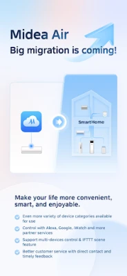 Midea Air je integrisana aplikacija za Midea proizvode za klimatizaciju. Upravljajte svojim Midea uređajima jednostavno. Kompatibilna je sa novim pametnim WiFi modulima i povezuje se sa otvorenom uslugom oblaka, pružajući vam potpunu kontrolu i udobnost.