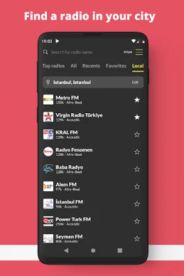 Радио Турска nudi paletu pametnih funkcija koje obogaćuju vaše svakodnevno slušanje. Uživajte u omiljenim melodijama dok koristite druge aplikacije ili dok je vaš telefon u režimu mirovanja. Probudite se uz nežne zvuke vaše izabrane stanice zahvaljujući funkciji alarma, ili se opustite uz omiljenu emisiju dok tajmer za spavanje automatski isključuje aplikaciju. Bilo da ste kod kuće ili putujete u inostranstvo, vaša omiljena turska muzika je uvek uz vas. Povežite se lako sa Android Auto, Chromecast i Bluetooth uređajima, a uz praktičan vidžet, vaše najslušanije stanice su samo jedan dodir daleko.